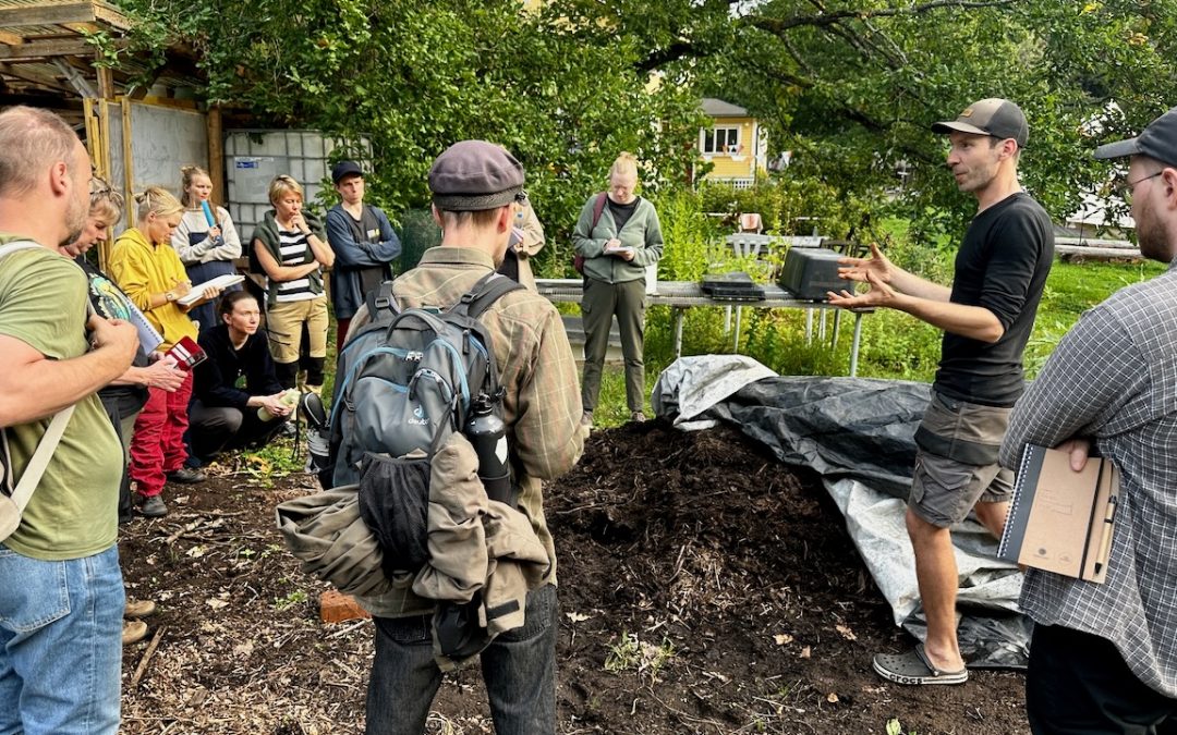 PDC-kurssilaisia opiskelemassa maaperää Uoma Earth Caressa Kimmo Englundin johdolla.